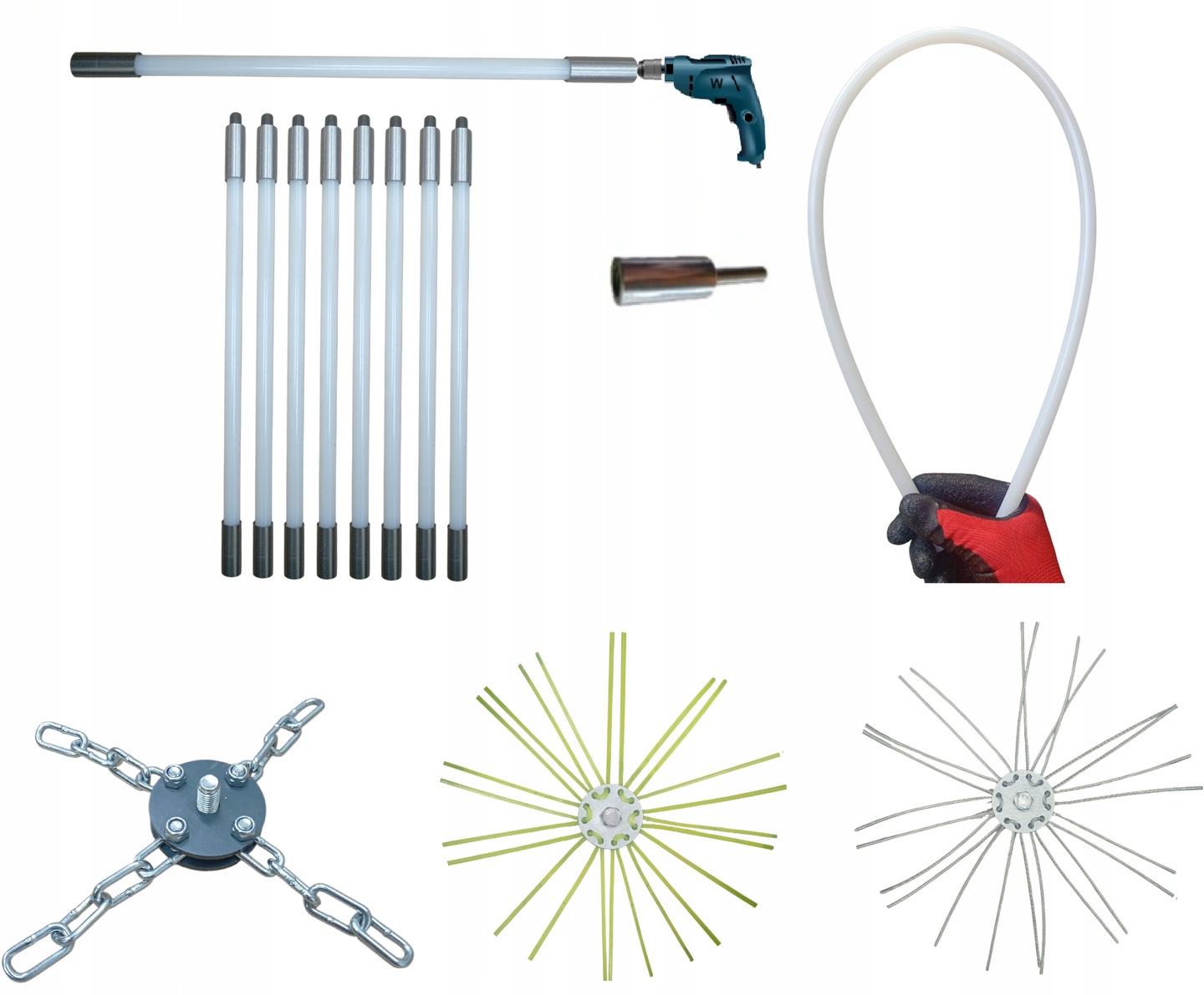 ZESTAW DO MECHANICZNEGO CZYSZCZENIA KOMINA OD DOŁU 8M + 3 GŁOWICE.