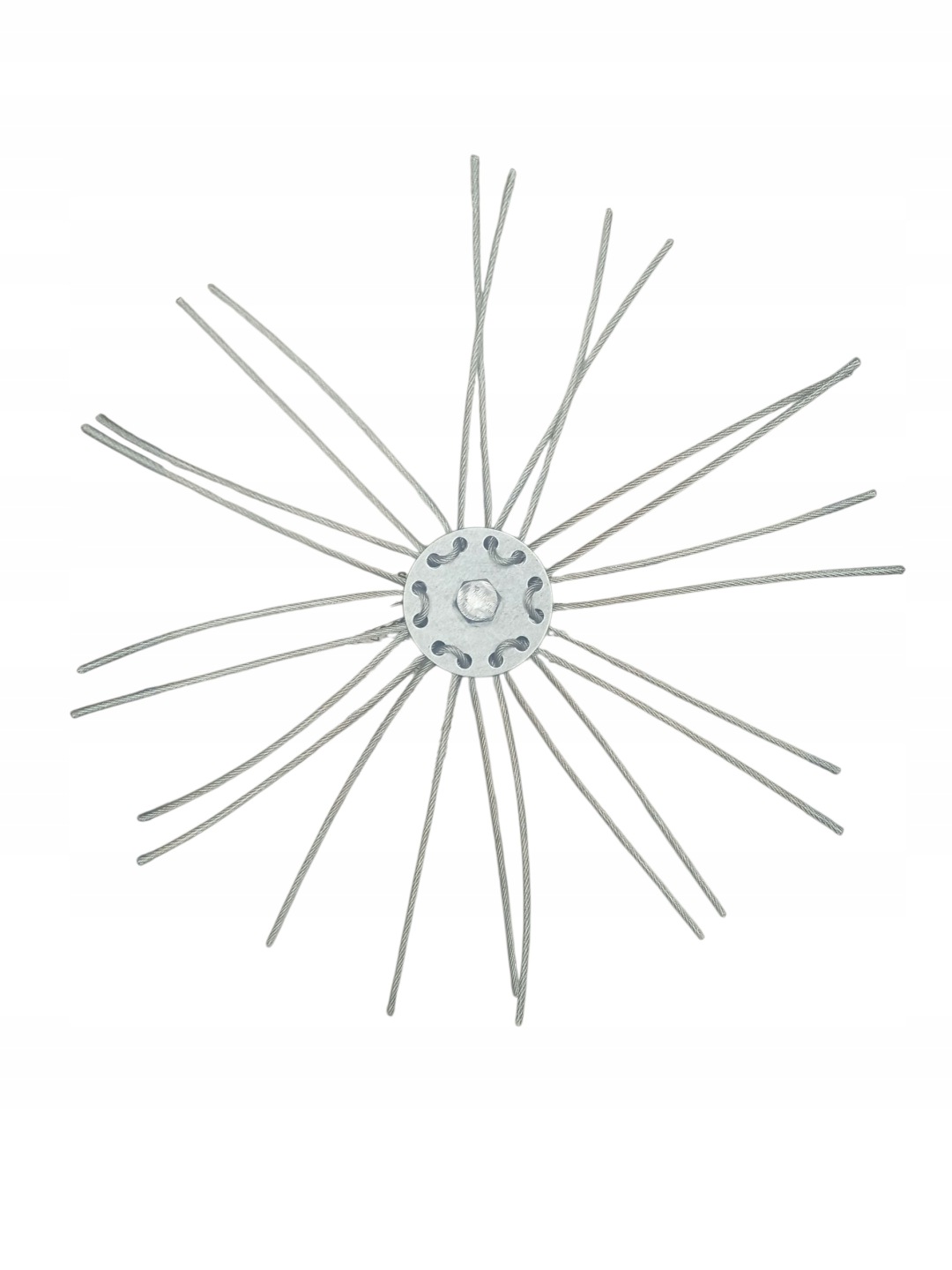 GŁOWICA SZCZOTKA 24 SZT LIN STALOWYCH Z PCV CZYSZCZĄCYCH - KOMIN Z CEGŁY ,STALOWY I CERAMICZNY O ŚREDNICY FI 300 (DOPASUJE SIĘ DO WIELKOŚCI KOMINA OD 120 DO 300 MM)